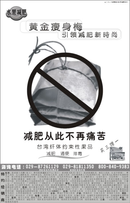 黃金瘦身梅報刊廣告刊登于2005年11月22日<<西安晚報>>
