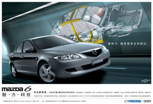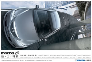 《一汽MAZDA6系列》廣告,在2003年中國(guó)汽車類廣告中突顯出了它獨(dú)特的感染力。總結(jié)為三個(gè)方面:其一,概念獨(dú)特,它提出了高級(jí)轎車新視角的獨(dú)特傳播概念:從現(xiàn)在起,高級(jí)轎車的魅力,請(qǐng)用全新的角度來(lái)審視;其二,構(gòu)圖上以空間錯(cuò)位的手法,對(duì)"新視角"加以視覺化渲染;其三,將"新視角"的概念較完美地貫穿于整個(gè)系列廣告中。屬于既叫座又叫好的作品。