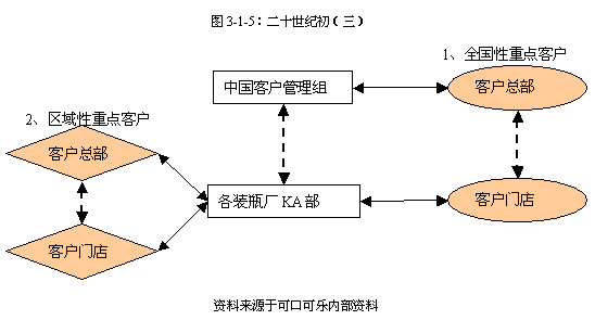 例如,在原有運(yùn)作方式下,與客戶總部的業(yè)務(wù)溝通依賴于當(dāng)?shù)劁N售部門,而相關(guān)的市場政策由市場部門統(tǒng)一制訂及控制,因此難以與特定客戶制訂一系列符合可口可樂規(guī)范的長期針對(duì)性合作項(xiàng)目,而在新的運(yùn)作方式下,在各系統(tǒng)總部KA的統(tǒng)籌和指導(dǎo)下,與特定客戶制訂專項(xiàng)合作項(xiàng)目已經(jīng)成為各裝瓶廠KA部門的一項(xiàng)基礎(chǔ)工作。