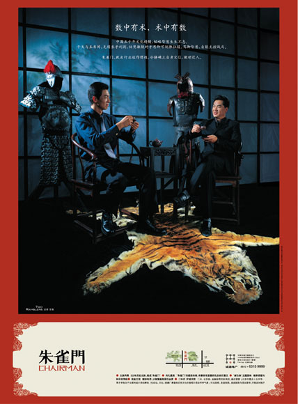 實際創(chuàng)作過程中,“朱雀門”不去空喊“弘揚國粹”,也不會空喊“西化”,而是將中西文化的情感模式、居住模式作具體、深入、細(xì)致地介紹、比較、分析和討論,來重新思考中西文化交流后的真正意義。廣告創(chuàng)意系列采用了“新儒家文化精神的外在表現(xiàn)”為創(chuàng)意原點,表達(dá)了目標(biāo)客群“對仁義的態(tài)度與信念所表現(xiàn)出的行為方式”—— “禮”(“禮”來自儒家五常系統(tǒng)即“仁、義、禮、智、信” )。中國號稱禮義之邦,中國人也素來以此標(biāo)榜自己的傳統(tǒng)特征!岸Y”是中國文化和儒家思想最為重要的基本范疇和觀念。