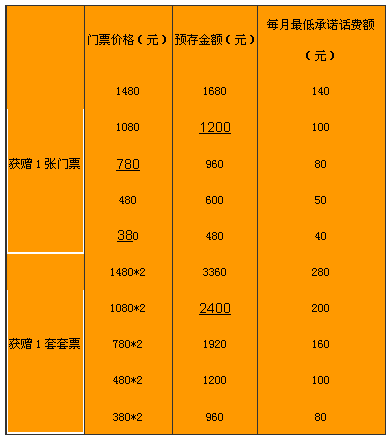 牌主張無比對路的促銷策略,而且在“我的地盤”絕不給新生的對手“UP新勢力”任何余地! 這場演唱會的門票從1480元、1080元到380元、180元,但卻沒有任何一張門票進入銷售而是由周杰倫的幾個贊助商買單。在這場總共3.3萬張門票中,北京移動一舉買下了高達25000張門票,回饋一百多萬北京“動感地帶”客戶。對于“動感地帶”廣大JAY迷來說,這一模式帶給他們的實惠是顯而易見的。例如,一位“動感地帶”用戶,每月話費40元,現在,只需預存480元并承諾每月消費40元話費,就能獲得價值380元的演唱會門票,(見表一)一年不用給手機充錢了。可以說M-ZONE人換取門票完全是免費的。交足話費送門票雖然與交話費送手機有些相似,但更具針對性和現實意義!