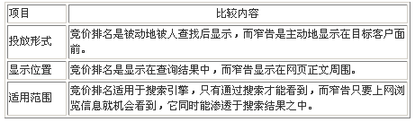 表二:窄告與競價排名的區別