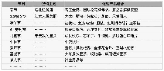 節(jié)日的表象是文化,節(jié)日的經(jīng)濟(jì)效應(yīng)隱含在節(jié)日的文化氛圍之中,節(jié)日的主題往往是有文化意味的美的東西,依據(jù)節(jié)日策大打保健品親情牌,是連鎖藥店獲得高利潤不錯的選擇。