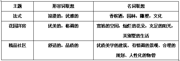 現有的推廣主題“法式花園洋房精品社區”已經形成了一定的影響,也能夠比較全面地概括出項目特色。但需要對此進行升華,使之具有更強的支撐力、吸引力、穿透力,更便于傳播,更能提升項目形象和價值。