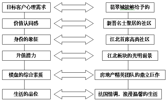 恒輝·翡翠城的整合推廣不能僅僅停留在項目的賣點上,而應該從目標客戶心理需求出發,綜合項目的賣點,提煉出項目的買點: