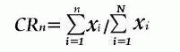 對于一個(gè)特定市場,一般測量4家企業(yè)集中率或8家企業(yè)的集中率,也就是說,n的取值通常為4或8。根據(jù)上表左側(cè)的數(shù)據(jù)求解: