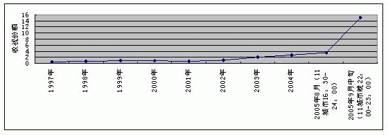 表一 2005年8月中國11個(gè)城市的衛(wèi)視市場份額