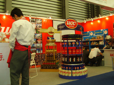 UCC(悠詩詩)咖啡是一個剛進入中國不久的國際知名咖啡品牌,此次參加第六屆中國國際食品飲料展覽會,展位是個三面靠墻的標準展位。我們(禪翼策劃)從產品為出發點、以品牌VI為規范,用創意設計為戰斗力,成功設計制作了一個極高性價比的展覽展臺。