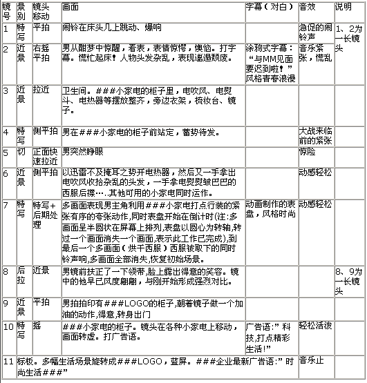 某著名企業(yè)產(chǎn)品廣告創(chuàng)意腳本(一)
