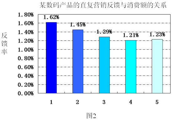 圖2是某數碼產品的直復營銷活動的反饋率與過去消費額的關系