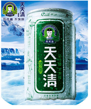 ‘差異設計’打造形象:確定了產品差異化賣點,高度對產品進行了重新的VI設計和包裝。在王老吉一枝獨秀的局面下,現在市場上的涼茶品牌,多采用跟隨策略,不但產品訴求與王老吉相似,甚至連包裝也是大同小異,以大面積的紅黑黃色彩搭配。為了與其他涼茶品牌形象區隔,天天清涼茶采用青、白色作為主色調,表現出產品的淡雅素靜。