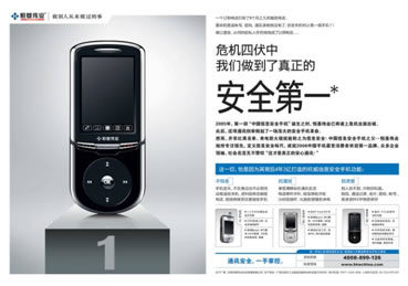 隨著推廣的逐步深入,一枝獨(dú)秀的局面漸漸被雨后春筍般的競(jìng)品所打破,很多手機(jī)廠商開(kāi)始打出信息安全概念,也在輪番轟炸諸如“防盜追蹤”“超級(jí)VIP”“防騷擾”功能,混淆消費(fèi)者視聽(tīng),而其實(shí)功能遠(yuǎn)不如商務(wù)通信息安全手機(jī)功能強(qiáng)大。為了不讓擦邊球影響我們的廣告?zhèn)鞑ヅc市場(chǎng)銷(xiāo)售,決定以廣告形式“打假”。于是適時(shí)推出一期新聞性直銷(xiāo)廣告,以正視聽(tīng),同時(shí)從另一個(gè)側(cè)面再次樹(shù)立了商務(wù)通——中國(guó)信息安全手機(jī)領(lǐng)域的領(lǐng)軍人物這一品牌形象,以至于后來(lái)只要提到信息安全手機(jī),人們第一反應(yīng)就是——商務(wù)通。