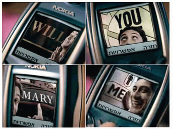 本來求婚是一件很浪漫感性的事情,但是在諾基亞演繹下,卻是那么的冷靜而理智,廣告中沒有旁白,沒有濫用情調,只有男主人翁在用諾基亞拍照拼成“Will You Marry Me”發給在雨天等待的女友求婚,配合Shakira的《Underneath Your Clothes》作為背景音樂,感動了全球看到這個廣告的人們,產品突出而說理生動;再比如諾基亞音樂手機5310廣告,公車上的男生用音樂對女生表達愛意,簡單的情節突現諾基亞音樂手機強大的音樂功能。