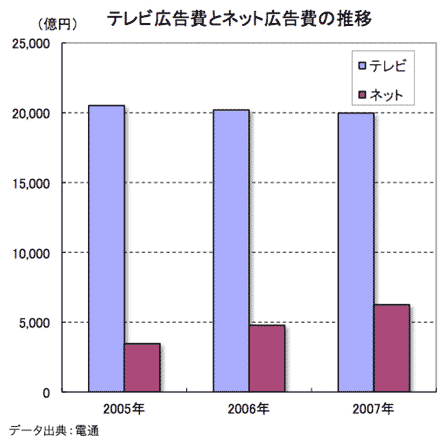 然而現在這種狀況也在悄然改變。老年人姑且不論,對于年輕的一代來說,內容和形式的可供選擇方案目前已經取得了絕對的優勢。Youtube、Mix、2ch、Second life、Mobagetaun、Wii,近幾年正在逐漸成長為電視的強勁對手。對年輕的一代來說電視廣告,只有為數眾多可供選擇方案之一而已。網絡廣告正在打破電視廣告對消費者的寡頭壟斷割據,而且正在逐漸動搖著“電視廣告帝國大廈”的根基。