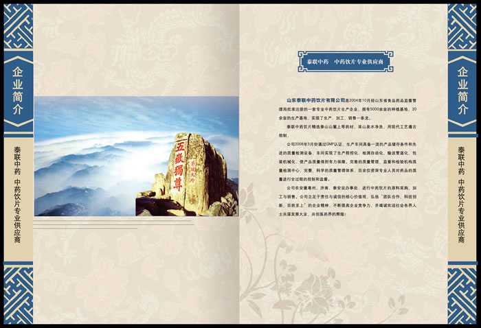 2、畫冊從企業簡介、產品介紹、質量保證、生產設備、營銷網絡等五個方面來介紹泰聯中藥,努力塑造企業藥材地道、設備專業、質量過關、管理規范、值得信任的專業中藥制造商形象。