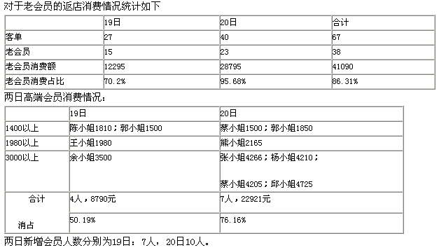 基本上達到會前所定的每日返店老會員20人以上的目標。
