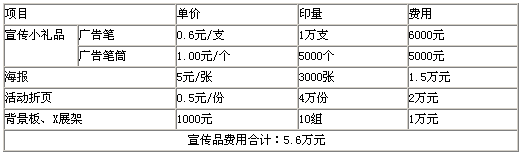 報名宣傳:大學校園10個報名點,每個點場地及人員預算1000元。社會2個報名點;每個點場地及人員預算2000元。合計1.4萬元