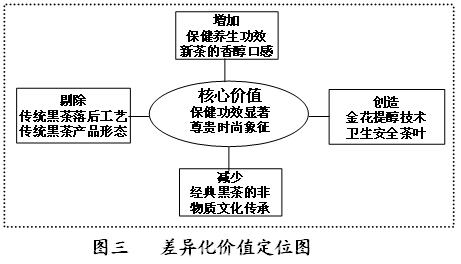 基礎,這些都是琥珀•金茶獨到的價值,是目標客戶在其它產品上找不到的價值;其次,明確琥珀•金茶在哪幾個方面要強化,即比現有的兩種可選方案要強,在這里我們選擇了新茶的香醇口感優于5年藏陳茶,保健養生功效是其他產品所不具有的;第三,在哪些方面我們要弱化,即減少對傳統茶文化的依賴;第四,在哪些方面可以刪除,干脆就不要了,以降低成本,改善客戶體驗,我們選擇了現代制茶技術和工藝,不采用傳統的產品形態,既保證了食品衛生,又提高了產品品質穩定性和產量。(見圖三)