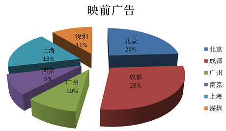 作為一部災難大片,《2012》帶給我們的不只是攝人心魄的災難場面,更是觸及到了人們內心深處的情感訴求。對于情感訴求的需要使得廣告商對于電影市場的廣告投入不遺余力。而這不正說明了情感營銷的巨大效應嗎?相對于電影《阿童木》、《建國大業》映前廣告以北京投放居多,此次CHR對《2012》映前廣告投放進行了統計,數據顯示成都的映前廣告最多,達到了185條,占到總體映前廣告的28%。