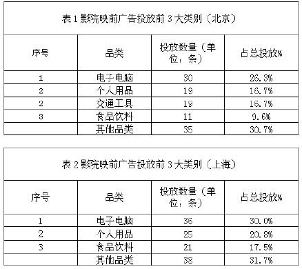 根據數據顯示,影院映前廣告投放第一的廣告品類以電子電腦、電信服務為主。