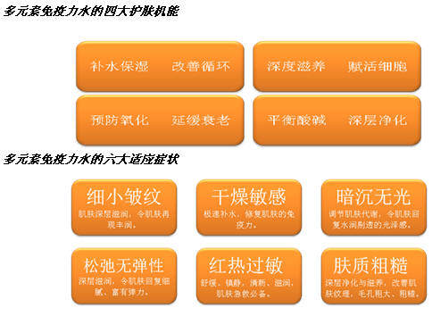 消費者并不會關心你的產品是怎么做出來的,她需要的是產品能夠給帶來的切切實實益處。于是產品的核心利益點出爐了:水潤剔透的美麗肌膚,很多產品在描述產品的功能與利益點時并不清晰,往往過于注重強調產品的功能,而忽略了產品適用對像的“對號入座”,于是,筆者把產品的機能與適用對像進行了更加準確的描述。
