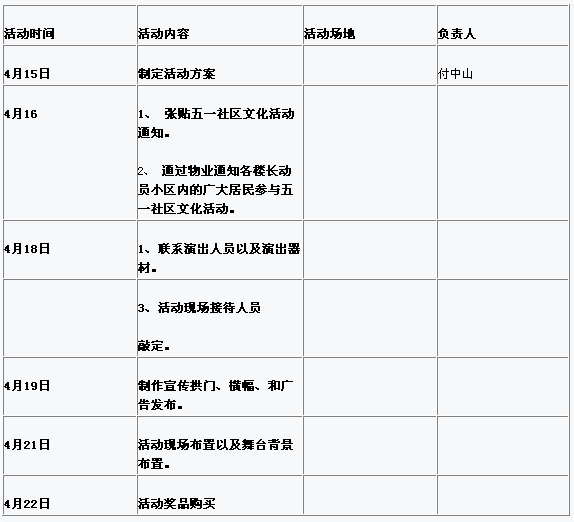 1、 五一社區文化活動上午安排