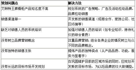 據調查分析,我們歸納出艾琳特王牌櫥柜目前的問題及解決方法。
