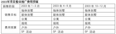 2003年項(xiàng)目整體推廣費(fèi)用預(yù)算(見(jiàn)表1)。