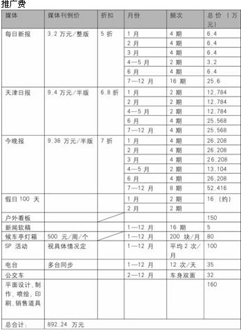 推廣費(fèi)用預(yù)算(見(jiàn)表2)。