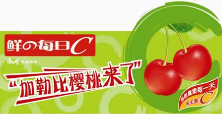 “加勒比櫻桃來了”。2004年8月份每日C康師傅飲品系列重力推出又一富有鮮活的飲料產品——加勒比櫻桃汁,掀起又一個海外風情的高潮。大街小巷處處彌漫著一股來自美洲風味的氣息,給整個每日C康師傅飲品系列帶來又一個新的亮點。每日C通過產品多元化,滿足了不同的消費者需求。