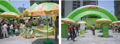 在前期每日C整體系列推廣過后,后期每日C推出終端堆頭建設,大力推出新穎獨特的終端促銷活動,吸引消費者眼球,促使消費者行動并加快購買頻率。通過買贈、降價等多種形式,不斷地在終端賣場推出造型多樣化的堆頭展示,讓消費者感受到每日C康師傅飲品系列花樣百出、口味多樣、層層新穎、重重驚喜,充分展示出強有力的視覺效果,使終端頓時亮了起來。
