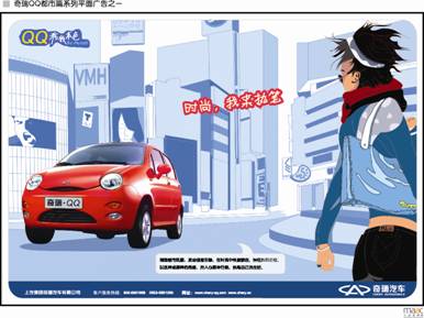 奇瑞搶先在市場上推出QQ,迅速贏得了年輕時尚一族的追捧(QQ也是一個非常成功的網絡即時聊天工具品牌)。