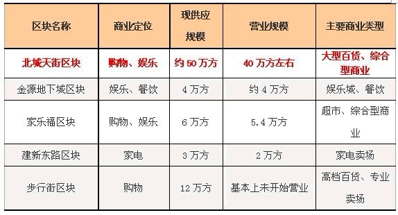 4)、區塊比較及發展趨勢、商業規模及類型比較